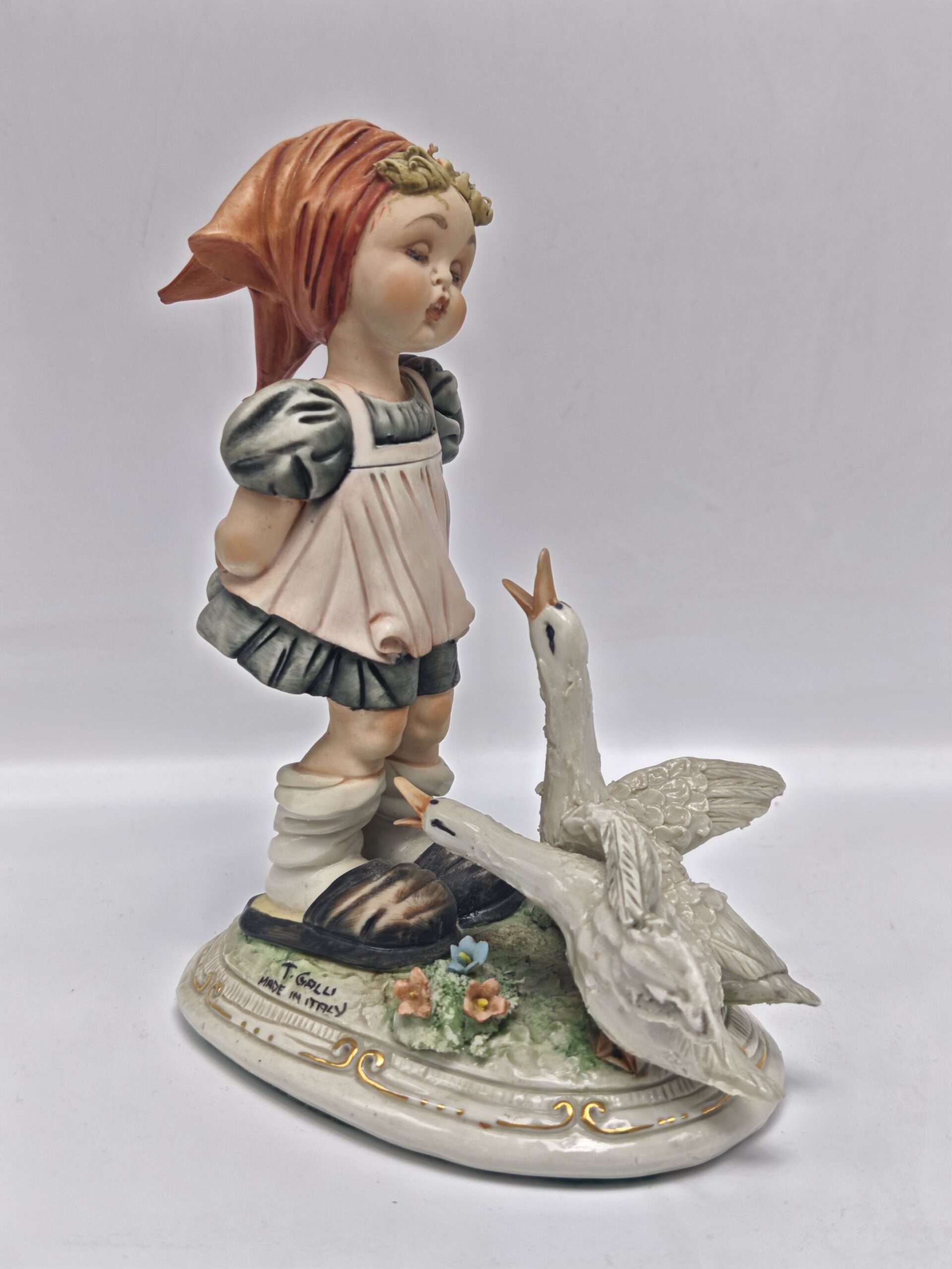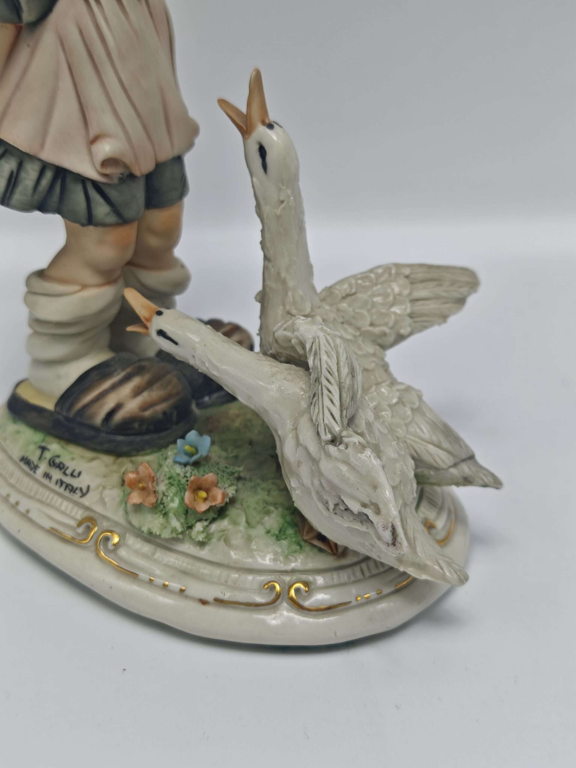 Статуэтка “Девочка с гусями”. Фарфор. Ручная роспись. Tiziano-Galli. CAPODIMONTE Италия