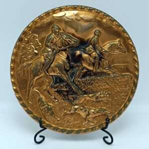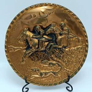 Винтажная декоративная настенная тарелка «На охоте». Медь, чеканка. Англия середина XX века..