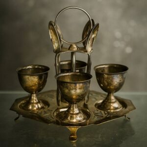 Bзысканный круэт для яиц: набор пашотниц с серебрением на рельефной подставке
