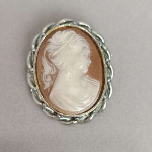 Винтажная брошь-камея, раковина и металл, ручная работа, Англия вторая половина 20 века