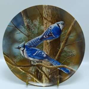 Декоративная тарелка «Голубая сойка. Британская Энциклопедия. Коллекция Птиц Вашего Сада». Фарфор, деколь. США, Edwin M.Knowles
