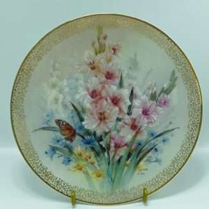 Тарелка винтажная декоративная цветы «Романтика гладиолусов». Лена Лю. Фарфор, деколь, позолота. W. J. George, США 1992 год