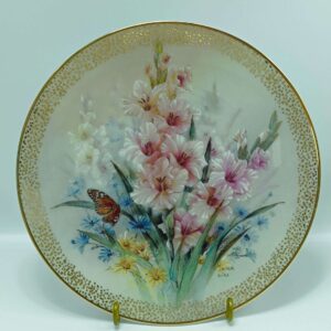 Тарелка винтажная декоративная цветы “Романтика гладиолусов”. Лена Лю. Фарфор, деколь, позолота. W. J. George, США 1992 год
