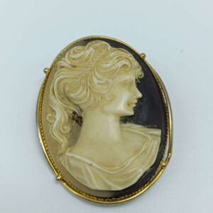 Винтажная брошь-камея, ювелирный сплав, смола. Англия вторая половина 20 века