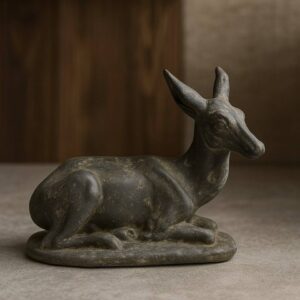 Винтажная статуэтка из олова грация природы, воплощенная в искусстве: элегантный олень, уютно прилегший в ожидании весенних цветов