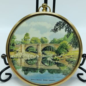 Винтажная Плакетка Миниатюра «Мельница». Подвесная. Фарфор. Деревянная рама. Англия