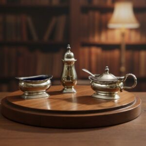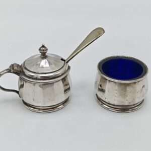 Винтажный набор “Cavalier Elegance” для соли, перца и горчицы (серебрение, кобальтовое стекло), Англия