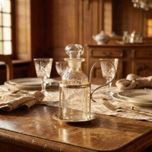 Декантер для вина в викторианском стиле стекло с алмазным узором, металлический верх с серебрением