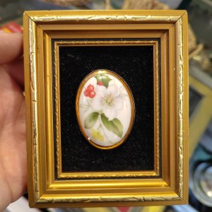 Винтажная Миниатюра Цветы на Фарфоре Плакетка