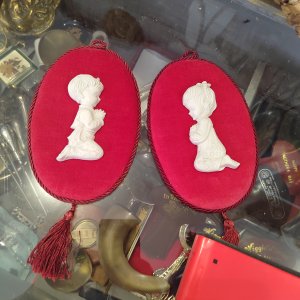 Винтажная Настенная Плакетка Миниатюра Фарфор Бархат