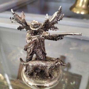 Редкая Статуэтка Охотник Собака Серебрение Винтаж