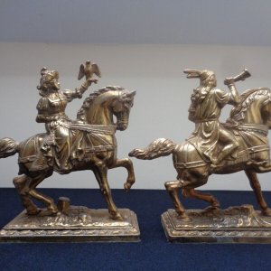Винтажная Пара Фигурок Охота Верхом Латунь