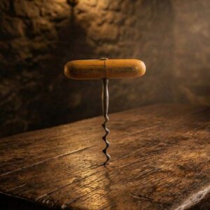Винтажный Т-образный штопор с массивной деревянной рукоятью и кованым стальным винтом, Франция, 1945 год