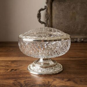 Ваза-роузбоул Queen Anne, хрусталь и серебрение, Англия