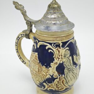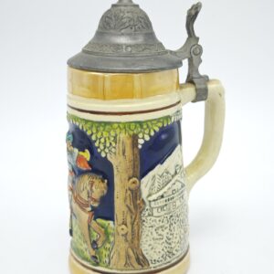 Коллекционная пивная кружка с крышкой. Керамика, рельеф, крышка — сплав металла. Германия 1970 года