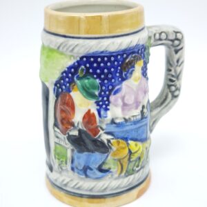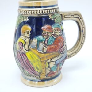 Коллекционная подарочная кружка «Застолье». Керамика, рельеф, ручная работа. Германия 1970 года. Высота 10.5 см