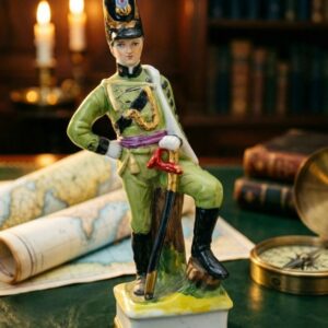 Винтажная фарфоровая статуэтка “Офицер стрелковой бригады 1815”, Западная Европа 1970-е, ручная роспись, позолота, БИТАЯ
