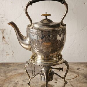 Винтажный чайник на подставке с горелкой: английское мастерство в серебрении и медном изяществе