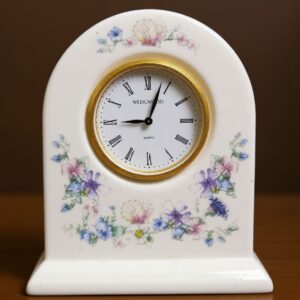 Винтажные настольные часы Wedgwood “Angela” из костяного фарфора с росписью деколь, 1980 года, Англия.