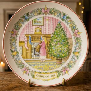 Рождественская тарелка “Dressing the Tree”, семейное Рождество, Англия 1987