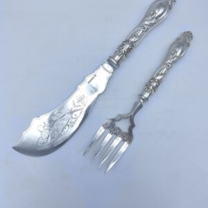 Элегантный винтажный серебряный комплект для рыбы: вилка и нож изысканный антикварный стиль