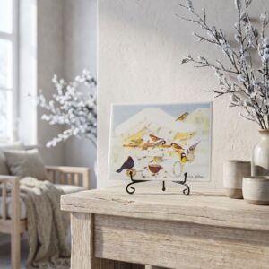 Коллекционная фарфоровая плакетка “Кормление птиц зимой”, настенная миниатюра в форме открытки, 15х10.5 см, серия VilboCard, Villeroy&Boch, Германия, 1982 год
