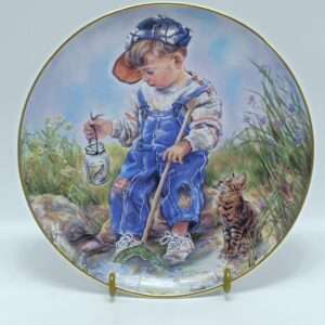 Винтажная декоративная тарелка «Дети. Мальчик с котенком на рыблке» Фарфор. Christine Haworth LEONARDO. Англия