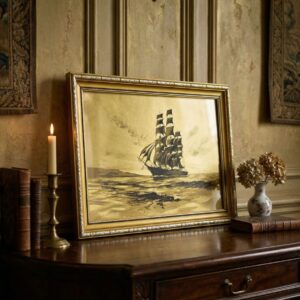 Картина на сусальном золоте “Парусник в открытом море”