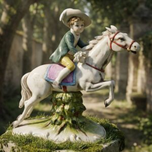 Европейская фарфоровая статуэтка “Юный всадник” – белый конь, ручная роспись