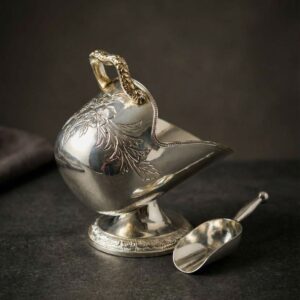 Посеребрённая сахарница “Шлем” с совочком
