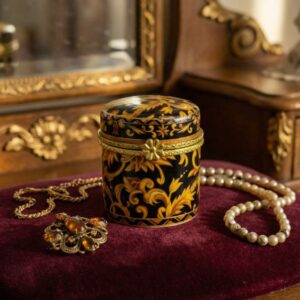 Антикварная фарфоровая шкатулка с золотым орнаментом