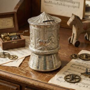 Винтажная музыкальная копилка “Карусель” с серебрением