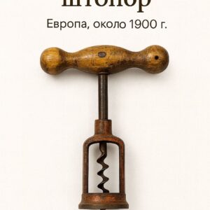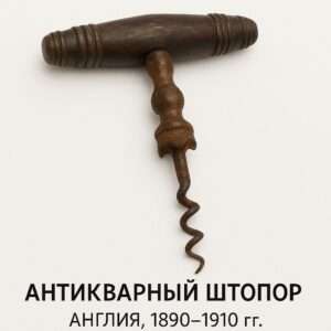 Антикварный штопор Итальянский штрих с деревянной ручкой