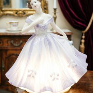 Фарфоровая статуэтка Coalport в бело-голубом платье, Ручная роспись, костяной фарфор, Англия 2000, Высота 14 см