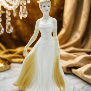 Фарфоровая статуэтка Coalport в бело-золотом платье, Ручная роспись, фарфор, Англия 1998, 14.5 см