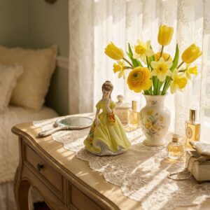 Фарфоровая статуэтка девушка с сумочкой в жёлтом платье с цветочным декором ручная роспись Япония 1980