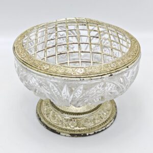Винтажная ваза Rose Bowl с хрусталём и серебрением, Англия вторая половина 20 века, 16 см, с решёткой для цветов