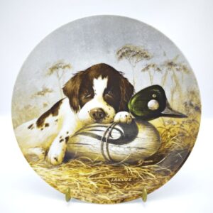 “Уставшая собака Спрингер-спаниель”: Винтажная фарфоровая коллекционная тарелка Edwin M. Knowles 1987 года, первая в серии “Щенки на охоте”, созданная художником Линн Каатц