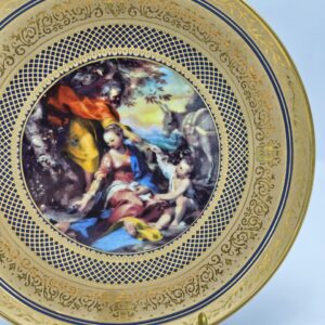 Винтажная декоративная тарелка “Отдых во время бегства в Египет” по мотивам картины Федериго Барокчи, ограниченное издание от Ватиканских музеев и Franklin Mint, фарфор, позолота