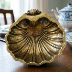 Винтажная икорница из латуни с серебрением “Раковина”, Английская сервировка стола, 15 см
