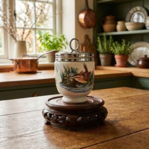 Кодлер для приготовления двух яиц фарфоровый с орнитологическим декором и хромированной крышкой, Англия 1970-е, Royal Worcester