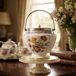 Фарфоровая бисквитница с цветочным декором, позолотой и серебрёной крышкой с ручкой, Англия 1930-е, Crescent
