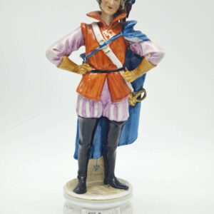 Статуэтка винтажная “Мушкетёр Д’Артаньян” из романа Три мушкетера. Фарфор, роспись, золочение. Западная Европа 1970 гг.БИТАЯ