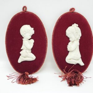 Винтажные парные панно “Девочка и мальчик”. Фарфор на бархате. Capodimonte. Каподимонте, Италия