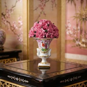 Декоративная фарфоровая ваза с букетом роз, ручная лепка и роспись, 14х9 см, Япония, 1960 год