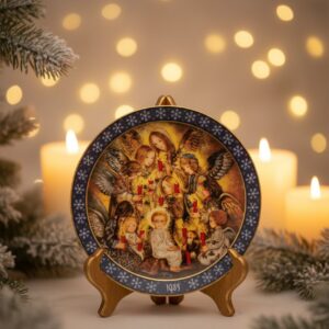 Рождественская коллекционная тарелка Ночная стража ангелов. Фарфор. Деколь. Германия. Konigszeit Bayern, 1985 г.