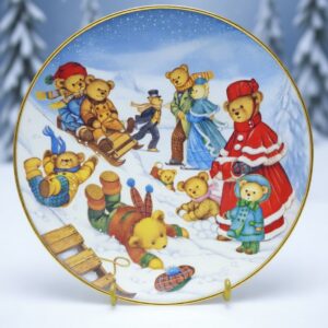 Винтажная фарфоровая тарелка “Тедди медвежонок. Зимняя забава” от Карол Лоусон, из лимитированной коллекции Franklin Mint, фарфор, позолота, Англия