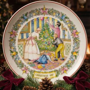 Рождественская тарелка “Dressing the Tree”, семейное Рождество, Англия 1987