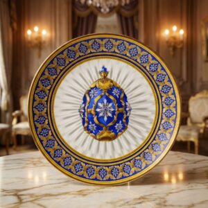 Коллекционная тарелка “Северная звезда Фаберже” с кобальтовым орнаментом и золочением, Franklin Mint, США 1980-1990-е гг.