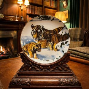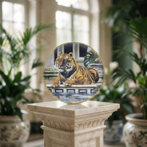 Декоративная фарфоровая тарелка The Imperial Tiger с изображением тигра золочёный кант Ron Kimball The Franklin Mint США 1991 год